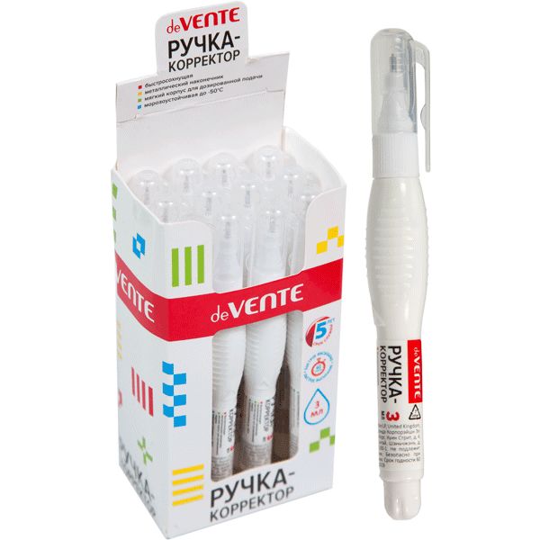 Ручка-корректор 3 мл deVENTE, на основе растворителя, метал. ПУ, эргоном. корпус