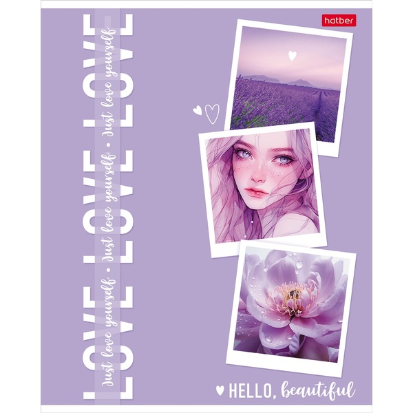 Тетрадь А5, клетка, 48 л., на скобе, 60 г/м², мат. лам., 3D лак, Hatber Sweet kiss (акционный товар)