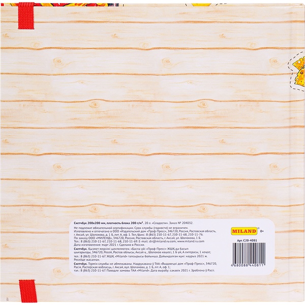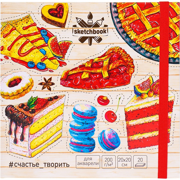 Скетчбук для акварели, 200*200 мм, 20 л., 200 г/м², бел. блок, 7БЦ, резинка, MILAND Сладости