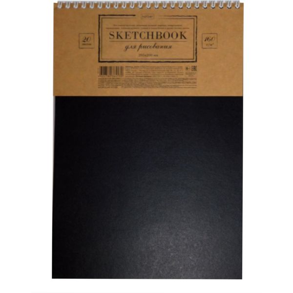Скетчбук А4, 20 л., 160 г/м², черн. блок, гребень сбоку, Hatber Сова