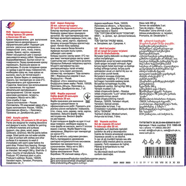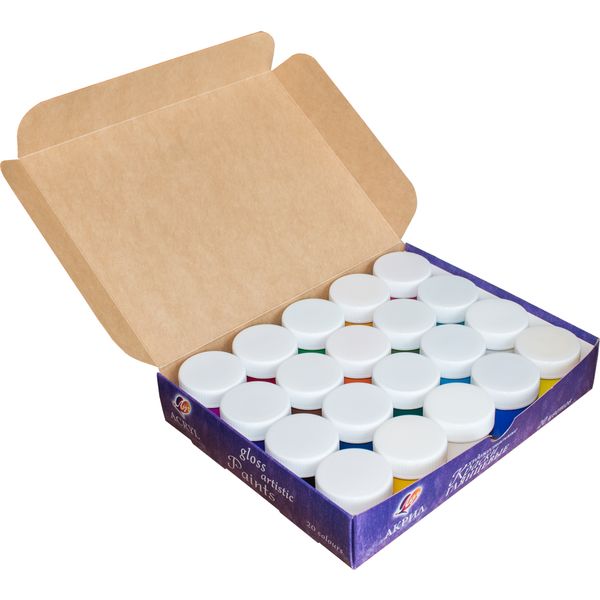 Краски акриловые художественные ЛУЧ, 20 цветов (глянцевые), банка 20 мл, в к/к
