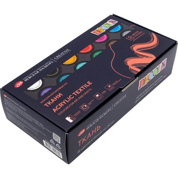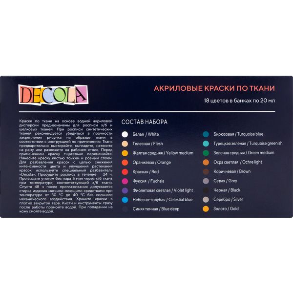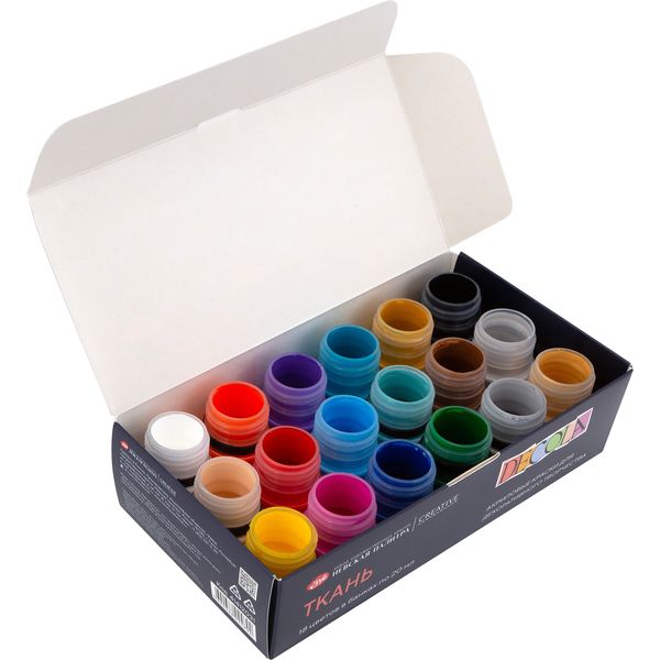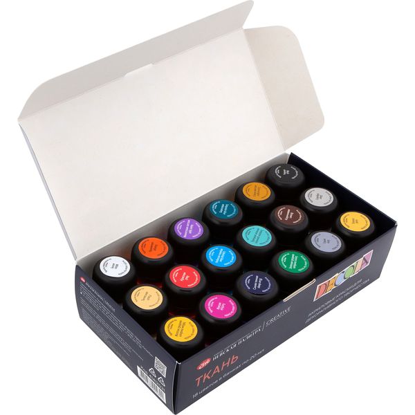 Краска по ткани в наборе DECOLA, 18 цветов, акриловая, банка 20 мл