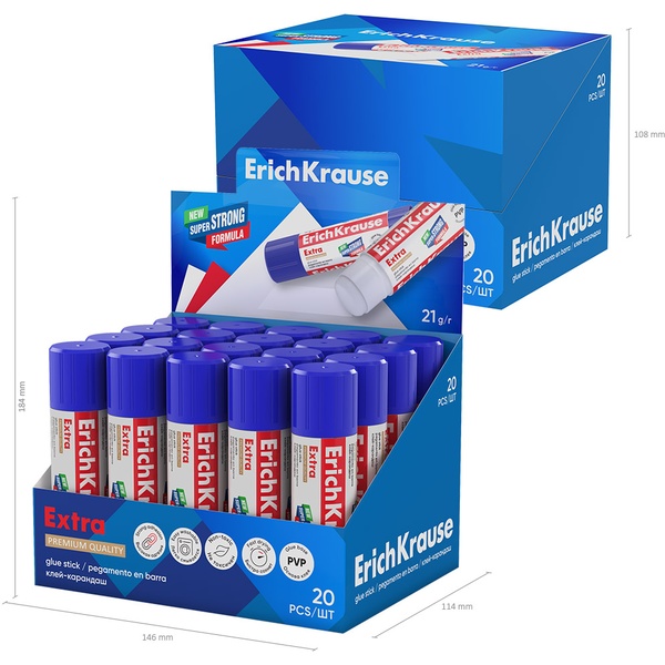 Клей-карандаш 21 г, PVP основа, ErichKrause Extra