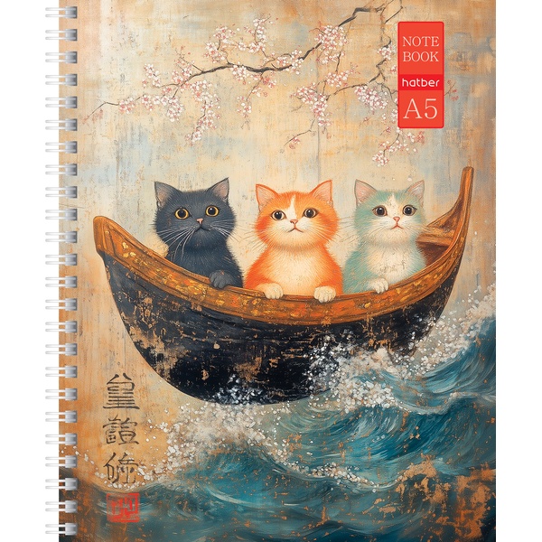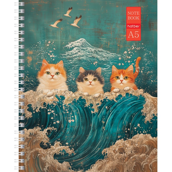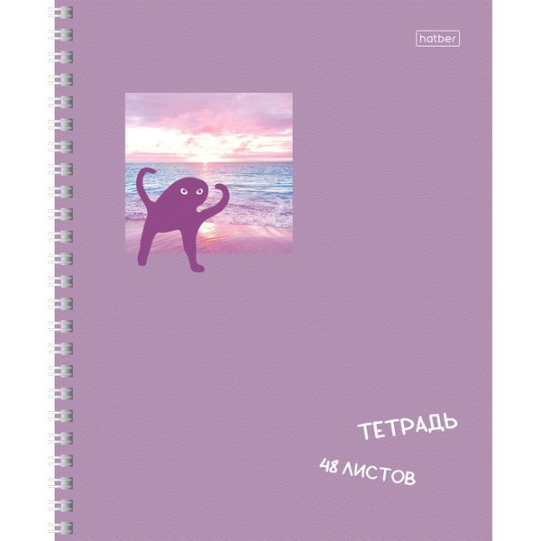 Тетрадь А5, клетка, 48 л., на гребне, 60 г/м², мат. лам., тисн., Hatber Коты и море_4 дизайна