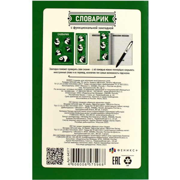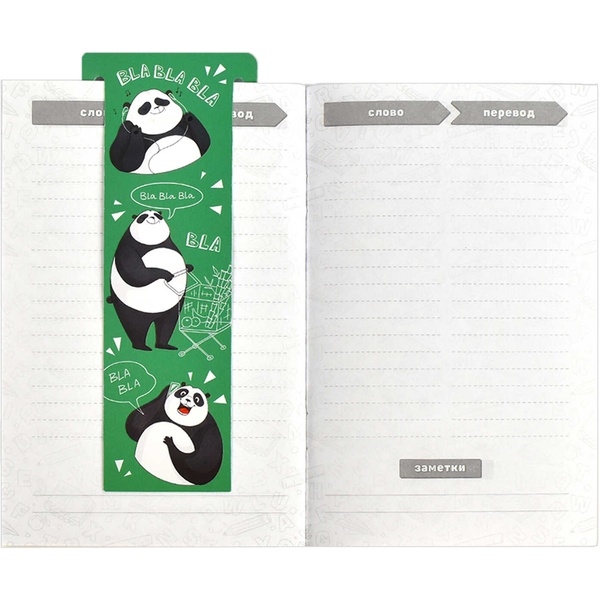 Тетрадь для записи иностранных слов, А6, 32 л., линия, скоба, закладка, ФЕНИКС+ День с пандой Акция!