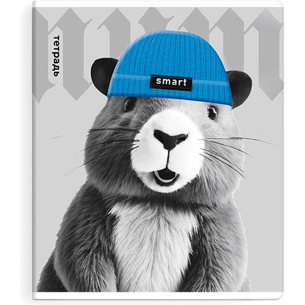 Тетрадь А5, клетка, 48 л., на скобе, 60 г/м², твин-лак, Феникс+ Звери в шапочках_5 дизайнов
