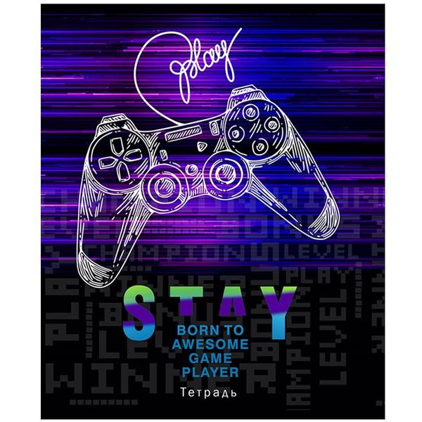 Тетрадь А5, клетка, 48 л., на скобе, 65 г/м², твин-лак, фольга, с/уг, Collezione Аксессуары геймера_5 дизайнов