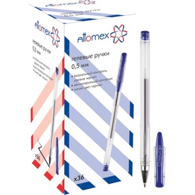Ручка гелевая синяя, Ø 0.5 мм, эрг. грип, метал. н-к, Attomex