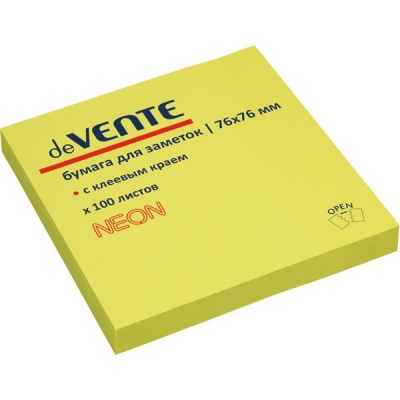 Бумага для заметок с клеевым краем, 76*76 мм, 100 л., 60 г/м2, пастельная, желтая, Stick`n ECO Hopax