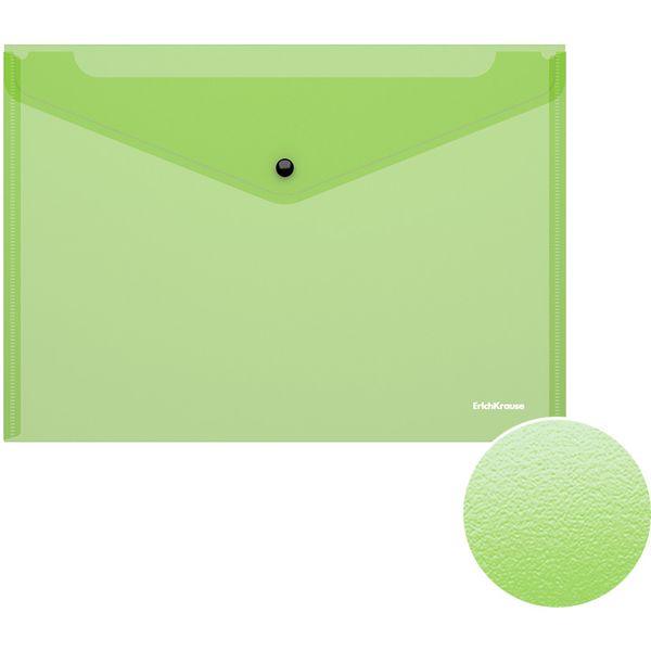Папка-конверт на кнопке, А4, PP 140 мкм, непрозрачная, "апельсин", ErichKrause Fizzy Classic_зеленая
