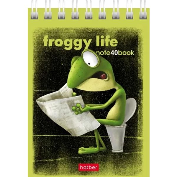 Блокнот на гребне А7, 40 л., клетка, 65 г/м², Hatber Лягух Кир_6 дизайнов