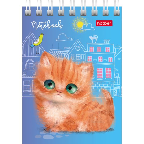 Блокнот на гребне А7, 40 л., клетка, 65 г/м², Hatber Кошарики_6 дизайнов
