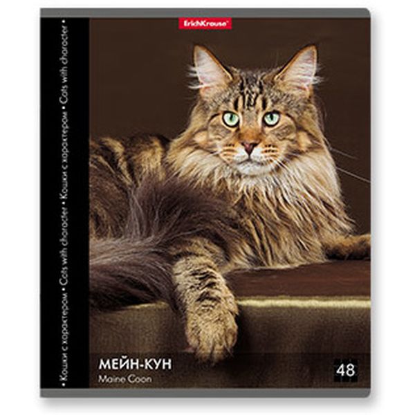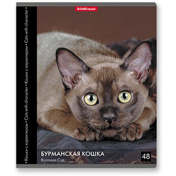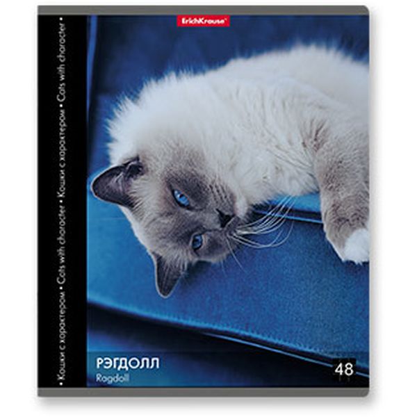 Тетрадь А5, клетка, 48 л., на скобе, 60 г/м², ErichKrause Энциклопедия_Кошки с характером_5 дизайнов