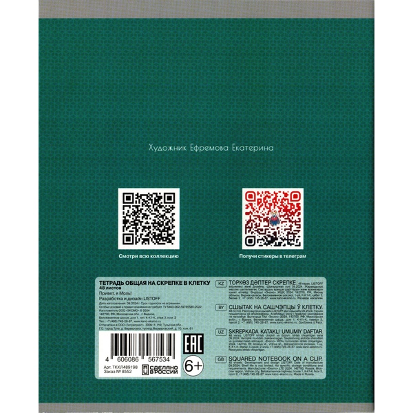 - Вид: тетрадь общая