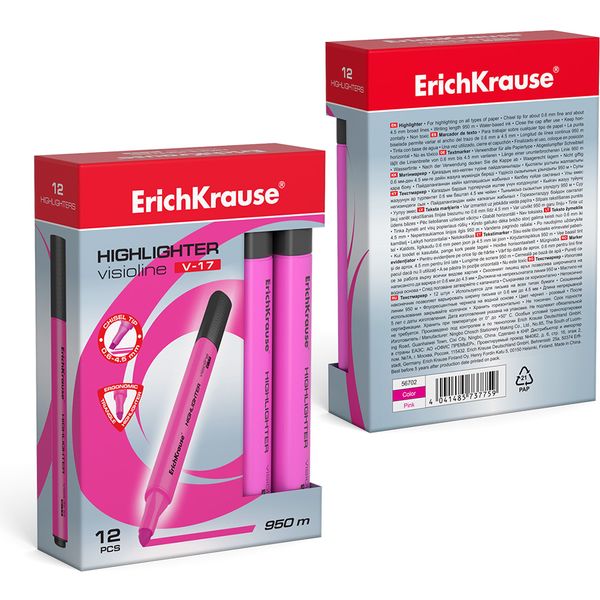 Текстмаркер розовый, неоновый, ШЛ 0.6-4.5 мм, н-к "клин", трехгр. корпус, ErichKrause Visioline V-17
