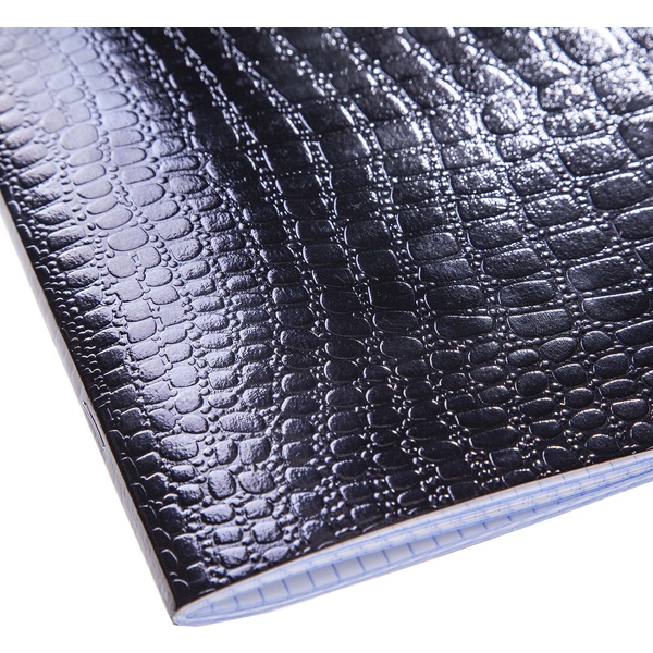 Тетрадь А5, 48 л., клетка, 60 г/м2, на скобе, облож. бумвинил, тисн. "croco", Hatber Metallic_черная