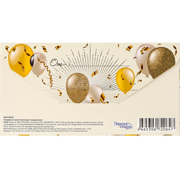Конверт для денег С днем рождения! DREAM CARDS (Букет шаров)