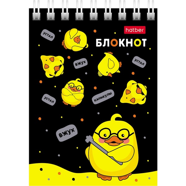 Блокнот на гребне А7, 40 л., нелинованный, 65 г/м² (тон. блок), Hatber Zoomer-girl_5 дизайнов Акция!