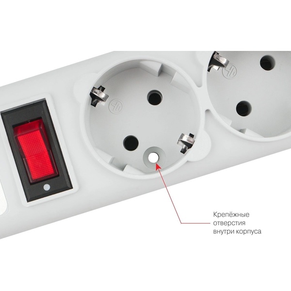 Сетевой фильтр, 5 розеток, 5 м серый