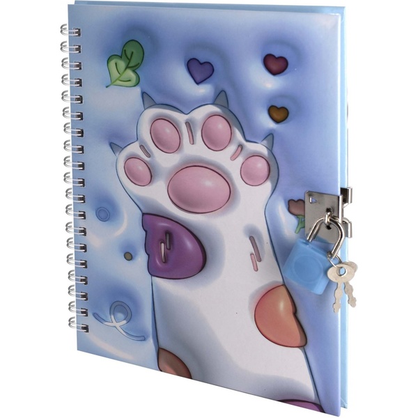 Блокнот с замочком, А5, 45 л, клетка, гребень, обл. 7БЦ, ручка + подар. упак., Alingar Лапки_голубой