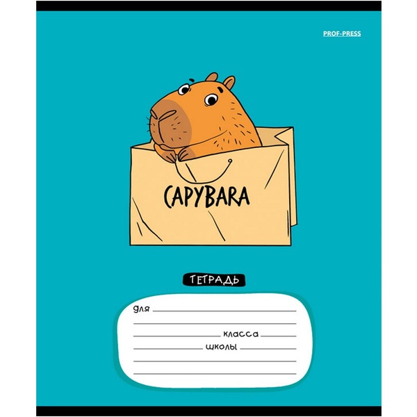 Тетрадь А5, клетка, 12 л., на скобе, 60 г/м², мел. бумага, Prof-Press Очаровательная капибара_5 дизайнов