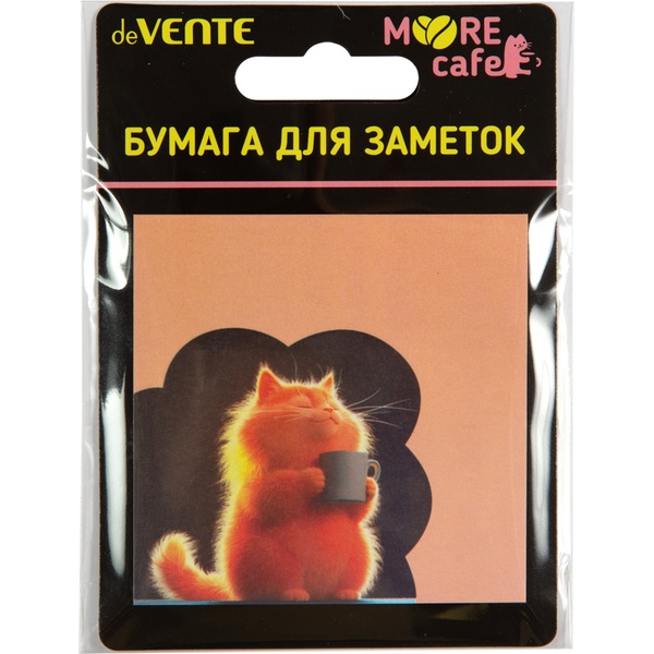 Бумага для заметок с клеевым краем, 70*70 мм, 20 л., 80 г/м², с печатью, deVENTE MooreCafe_4 дизайна