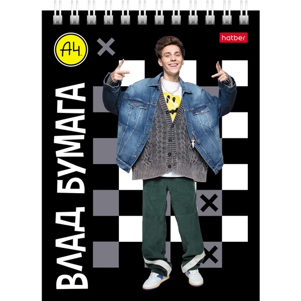 Блокнот на гребне А6, 40 л., клетка, 65 г/м², уф-лак, Hatber Влад А4_5 дизайнов   Акция!