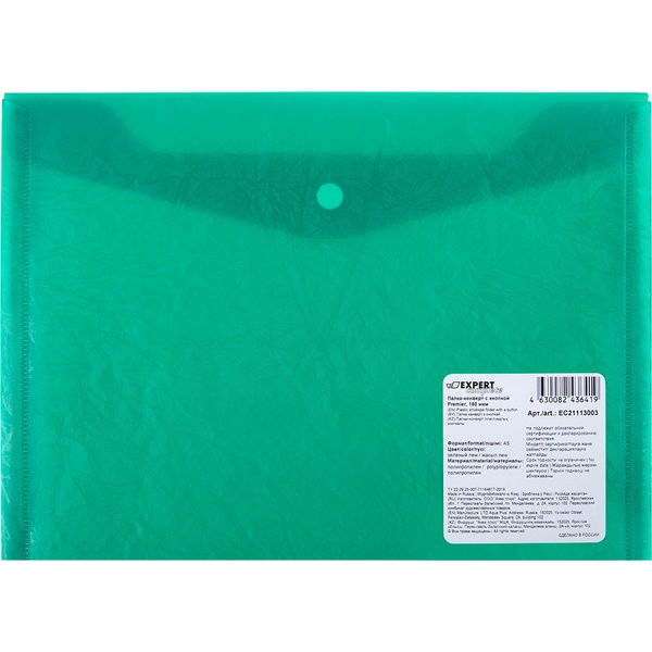 Папка-конверт на кнопке, А4, PP 140 мкм, непрозрачная, "апельсин", ErichKrause Fizzy Classic_зеленая