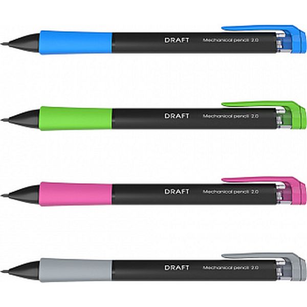 Карандаш механический 2.0 мм, НВ, ErichKrause Draft, трехгран. корпус, рифленный грип, клип, точилка