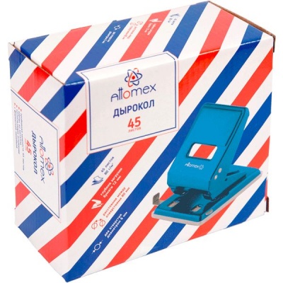 Дырокол на 45 л., 2 отв., металлический корпус, Attomex_синий