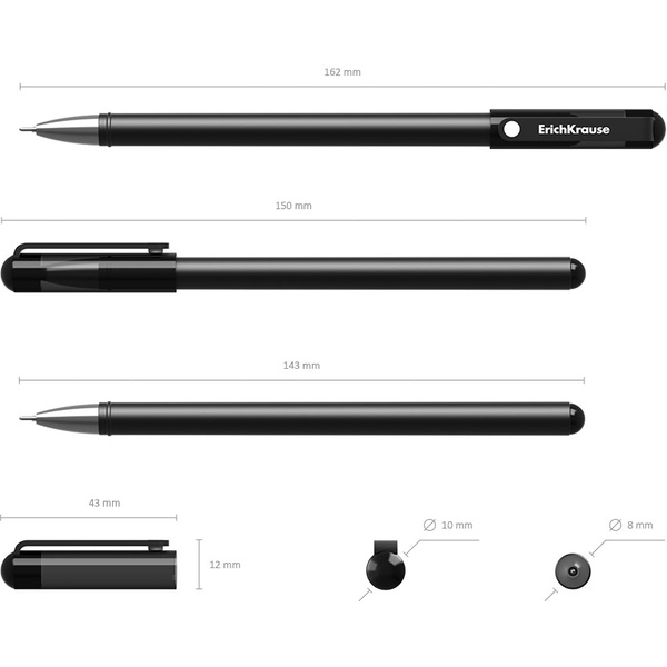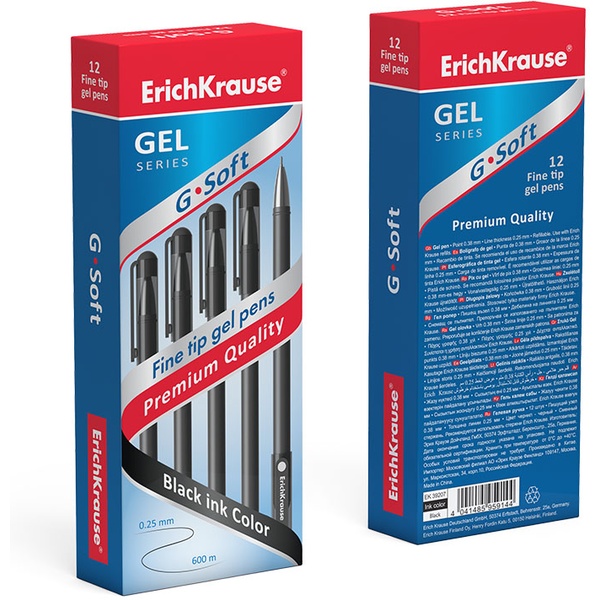 Ручка гелевая черная, Ø 0.5 мм, лин. 0.4 мм, ДП 500 м, рифл. упор, ErichKrause G-Tone Stick Original