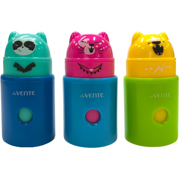 Точилка пластиковая, 1 отв., контейнер, ластик, кисточка, deVENTE Animals_Акция!