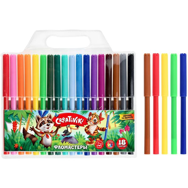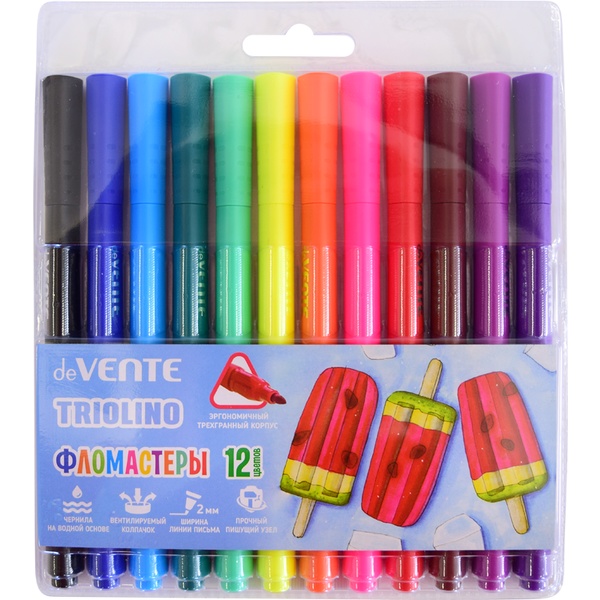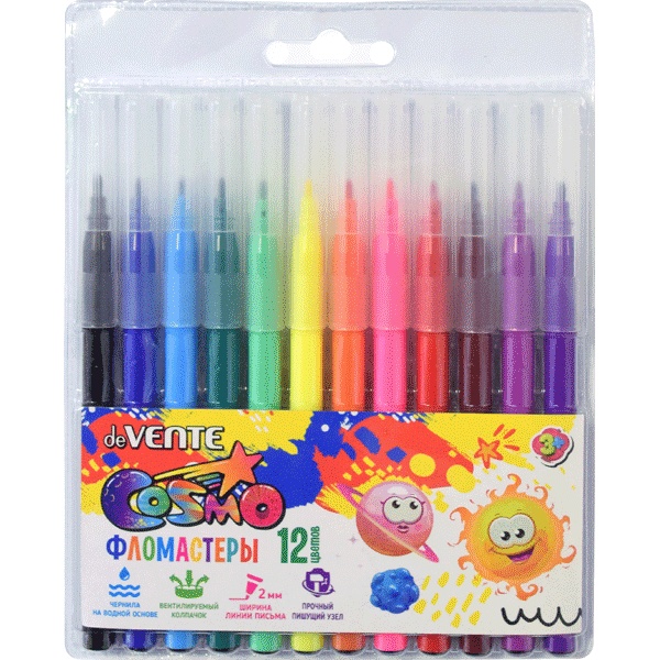 Фломастеры 18 цветов deVENTE Cosmo, круглые, чернила на в/о, ШЛ 1.0 мм, бел. вент. колпачок, пвх уп.