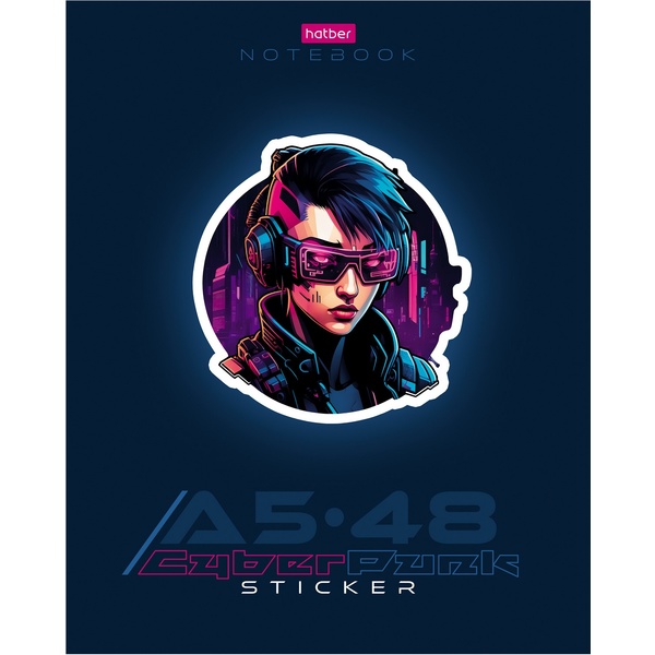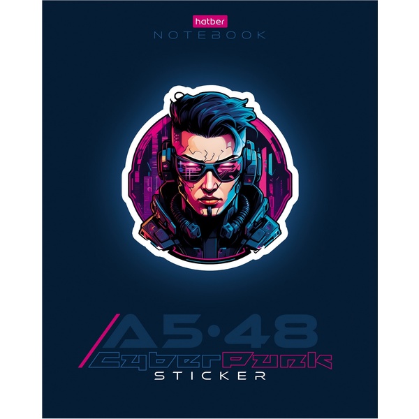 Тетрадь А5, клетка, 48 л., на скобе, 65 г/м², выб. лак, Hatber Cyberpunk sticker (акционный товар)