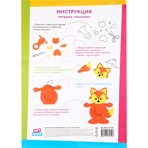 Фоамиран 2 мм, А4, 5 л., 5 цв., ArtSpace* Акция!