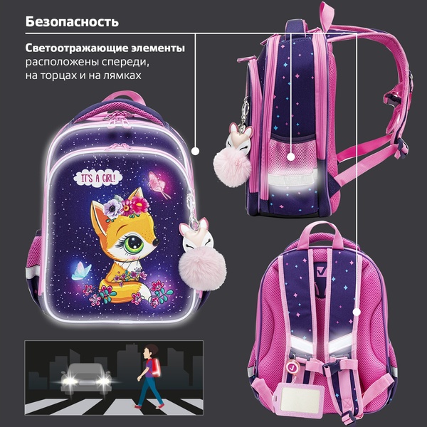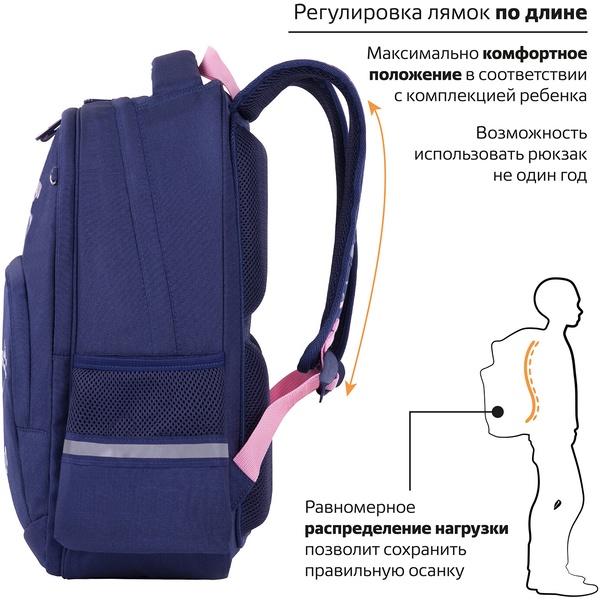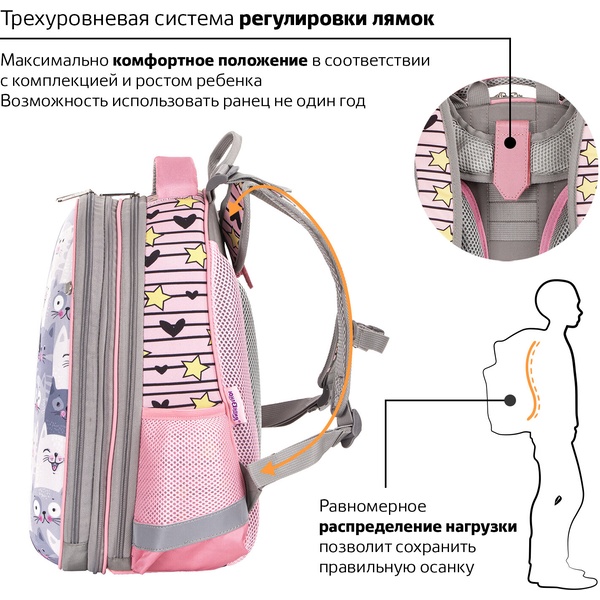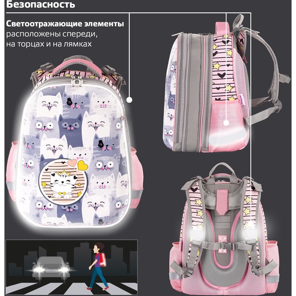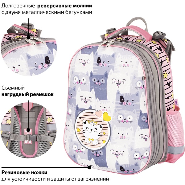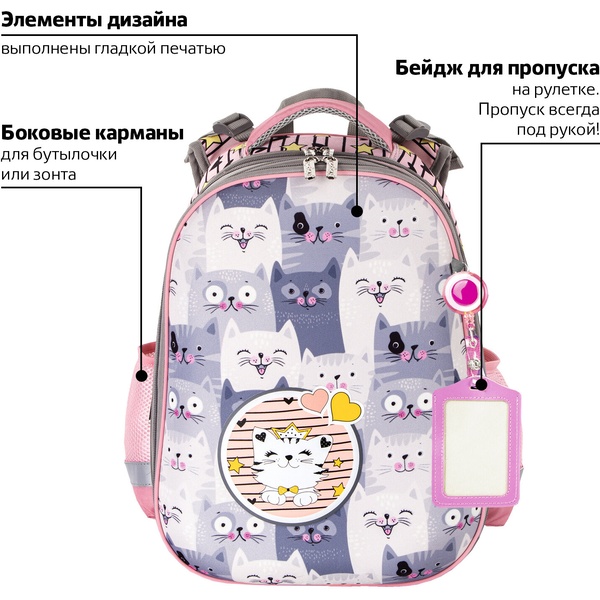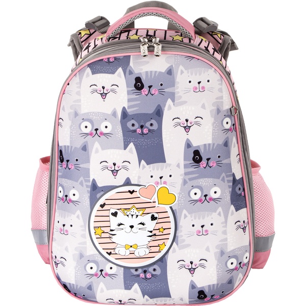 Рюкзак ученический ЮНЛАНДИЯ Extra_Gray kittens, 38*29*18 см, 17 л, 950 г, 2 отд., эрг. спинка Акция!