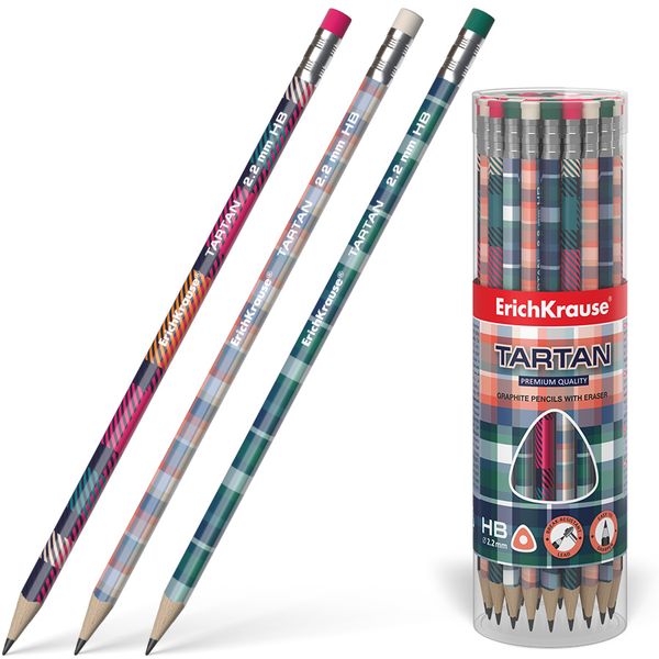 Карандаш чернографитный с ластиком, HB, деревянный, трехгранный, 6 диз., ErichKrause Deep Classic triangular